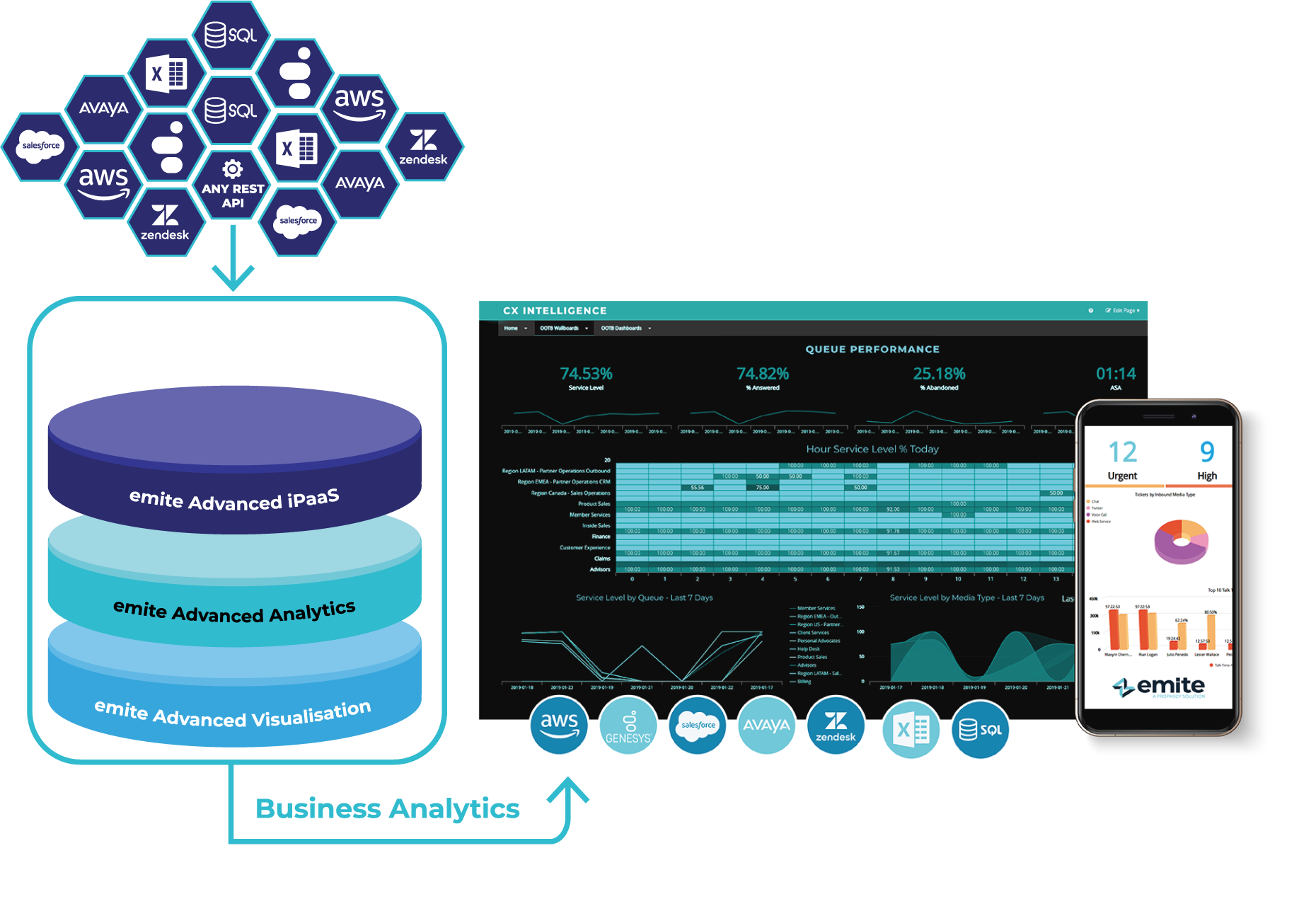 emite is a leading global contact center analytics solution that combines advanced analytics, data correlation, KPI management and threshold alerting into a single solution. emite provides actionable insights from both real-time and historical data to help improve contact centre efficiency, performance, and customer experience (CX).